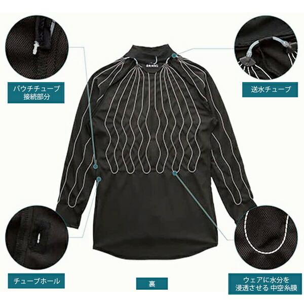 「水をまとう」涼神服(水冷シャツ)風を当てることで圧倒的冷却効果を発揮!全身に風を浴びるバイクツーリングと相性抜群!!水と風の相互作用で持続する涼しさ約-5℃!中空糸膜で新しい気化熱の価値を提案!服にムラなく送水できる涼神服!セット内容・涼神服・ポンプコントローラー・パウチパック(500ml)・パウチ専用ポーチ(500ml)・ペットボトル用チューブ