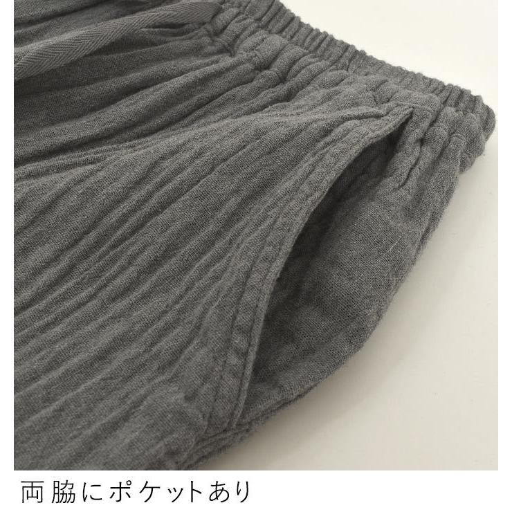 M〜3L ワイドパンツ 9分丈 総ゴム 楽ちんパンツ レディース 20番手ダブルガーゼ 綿/ カジュアル ナチュラル オリジナル コットン ウエストゴム 体型カバー エコロコ e+ Ms,Ls,LL,3L,/ 大きいサイズ 春夏 秋冬 24AW0802R,