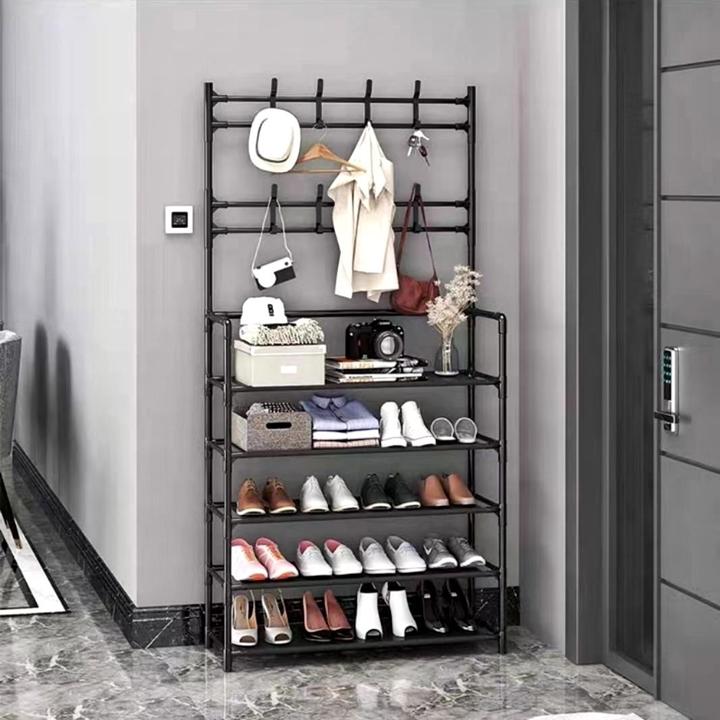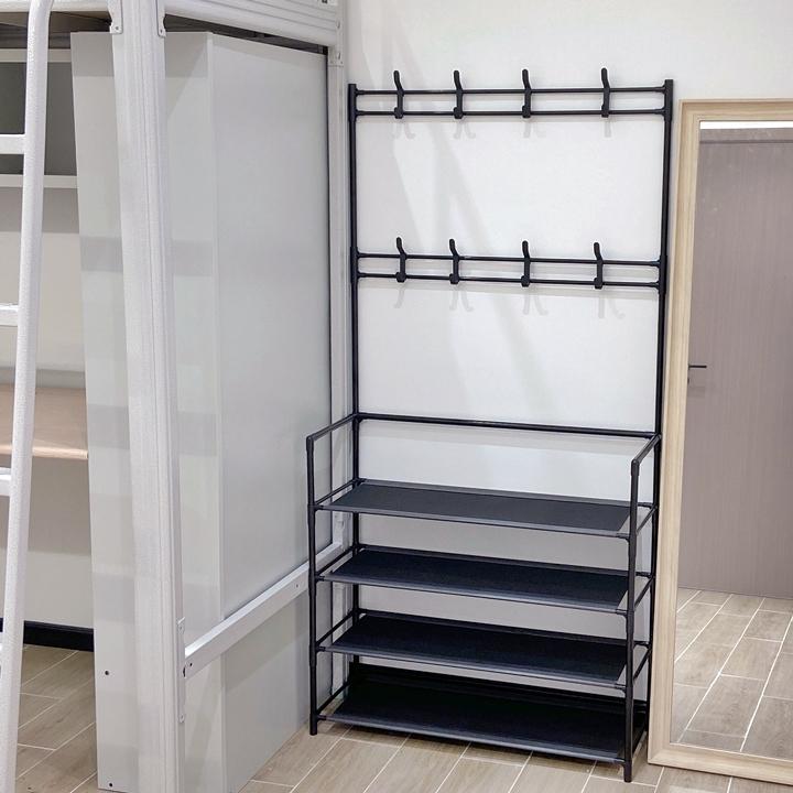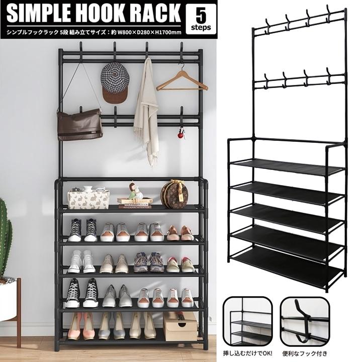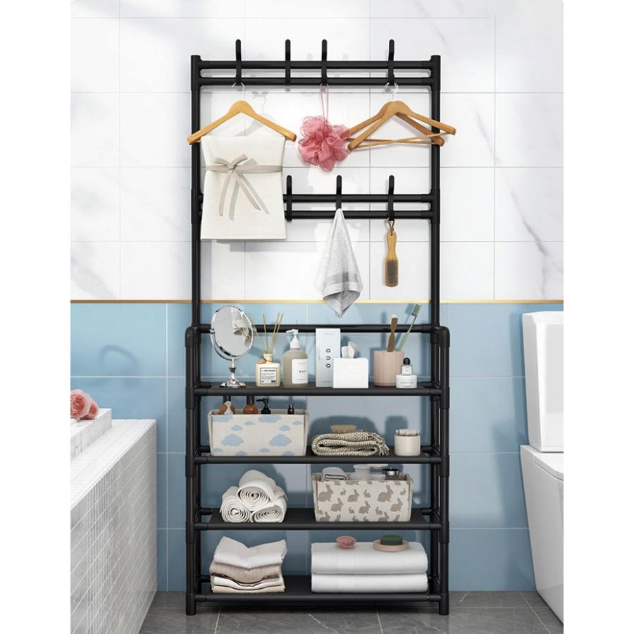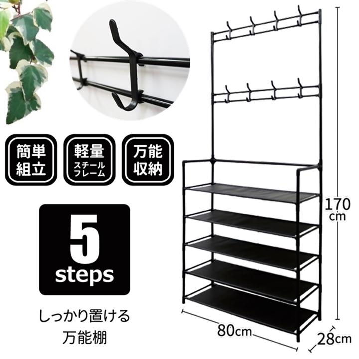 多くのアイテムを収納することができるフックラック5段