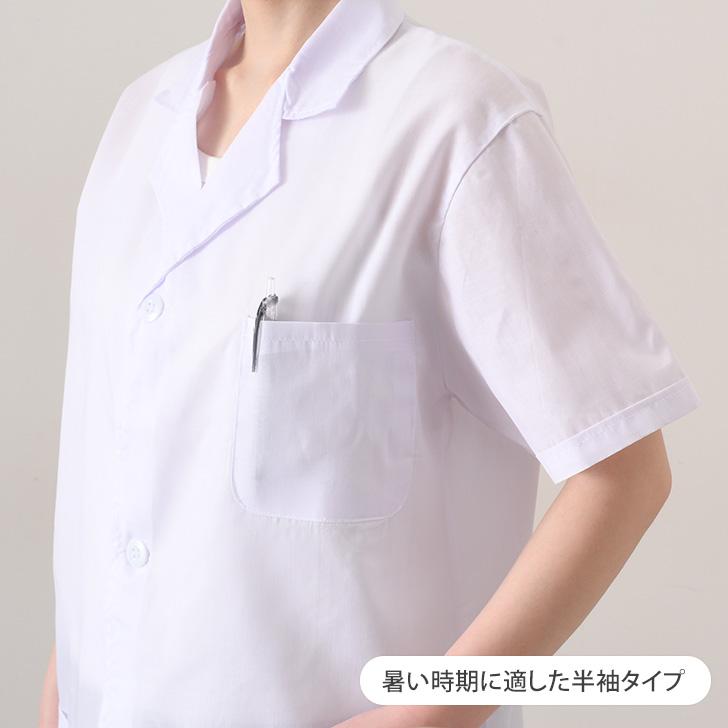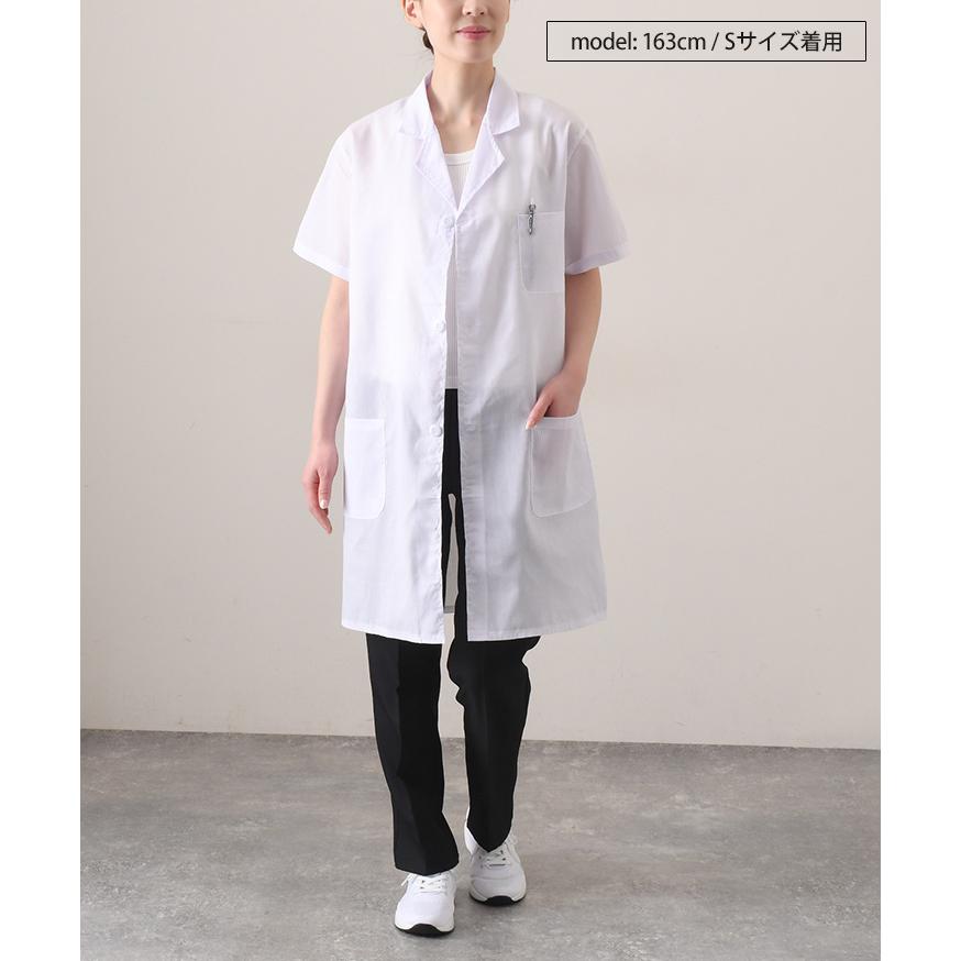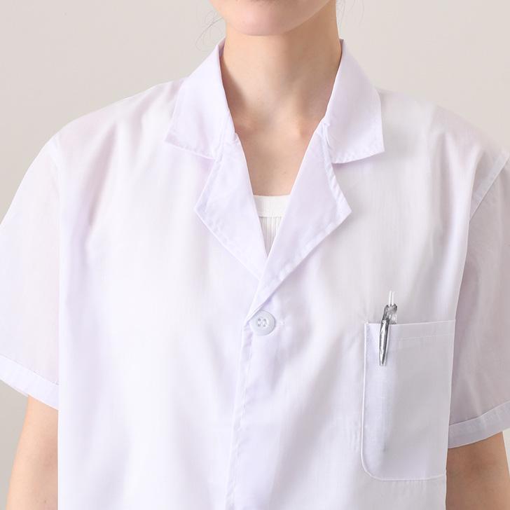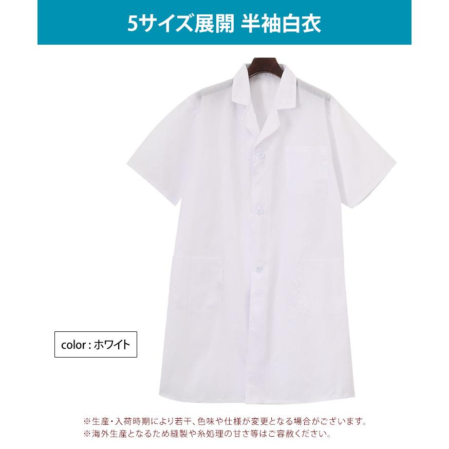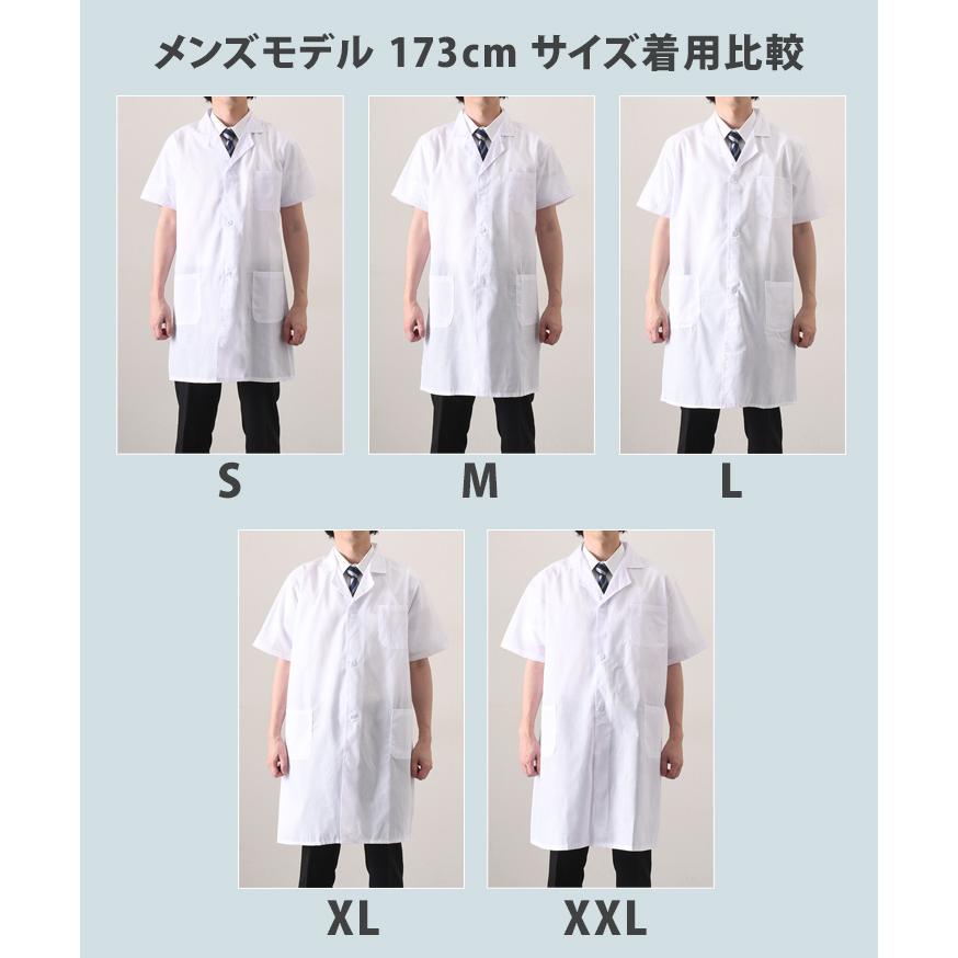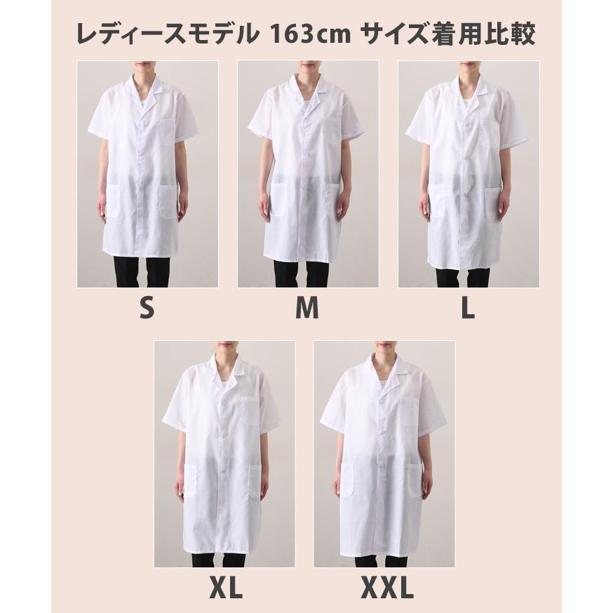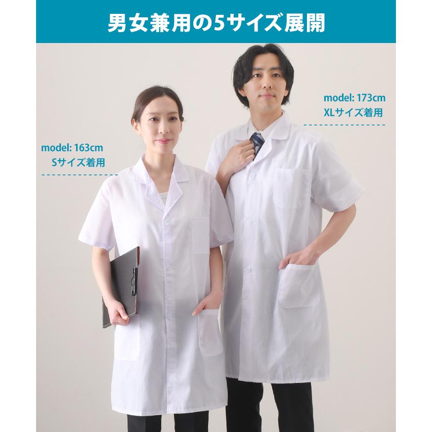 男女兼用の5サイズ展開。半袖白衣