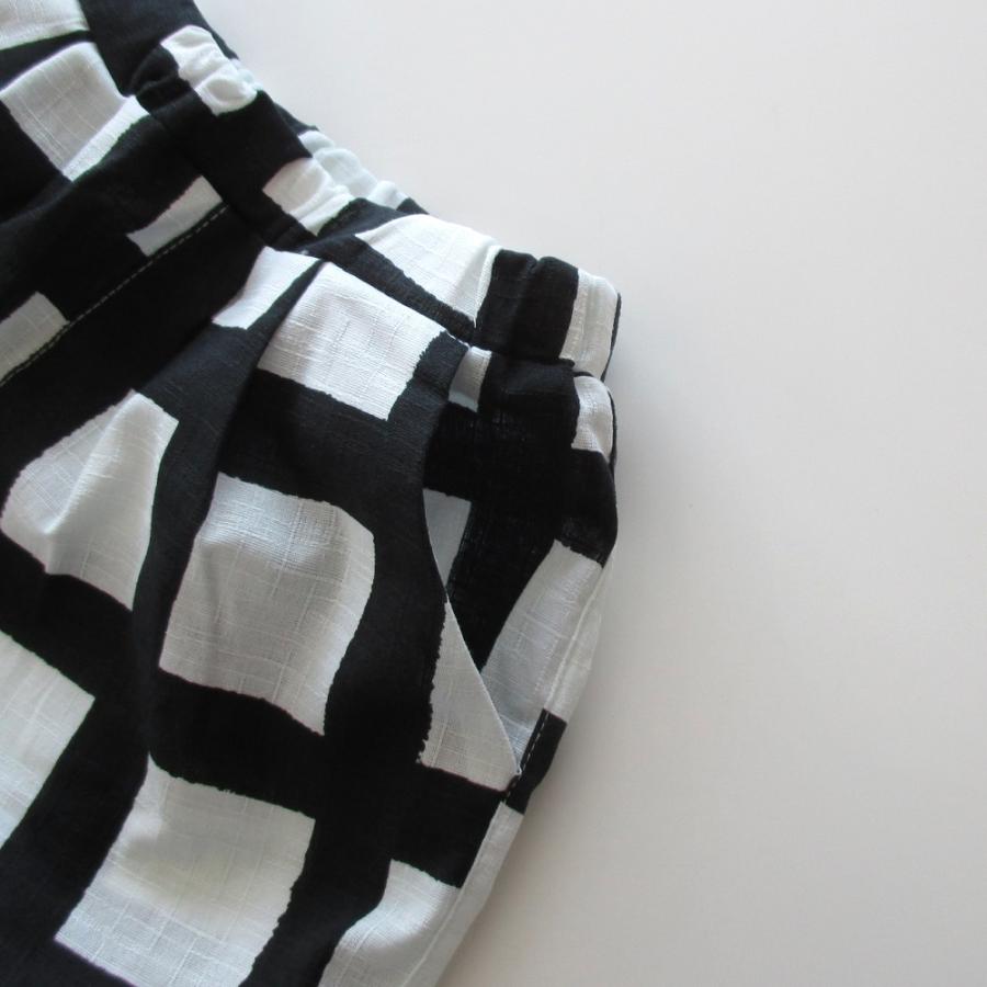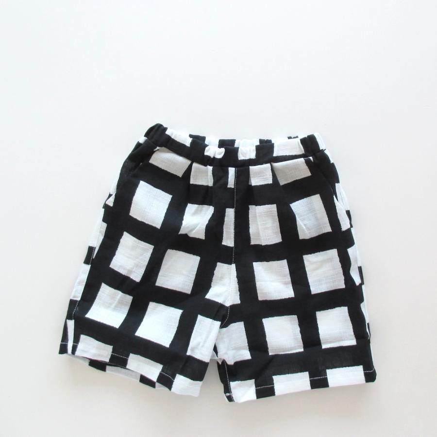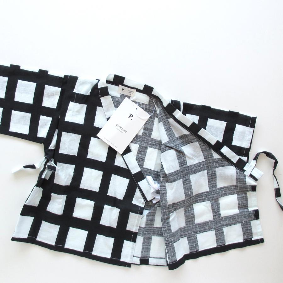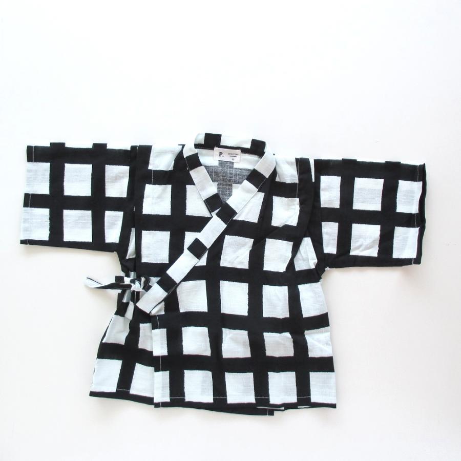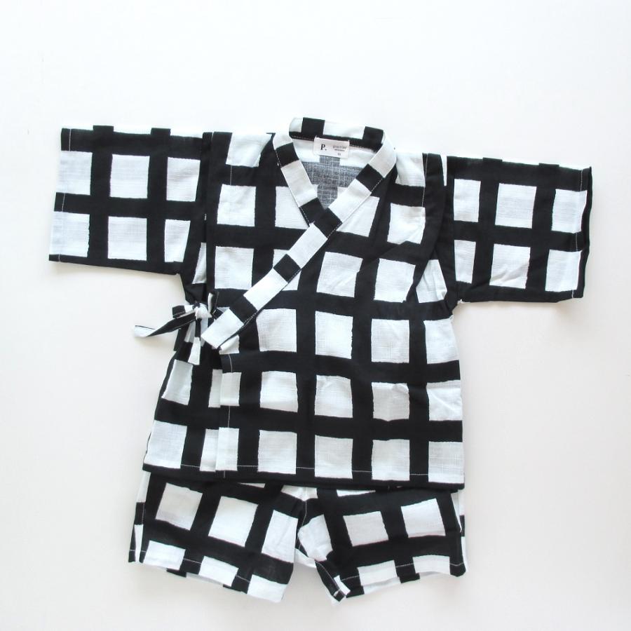 キッズ甚平 P.premier BIG格子柄ゆったりシルエット甚平 ブラック 100cm 120cm 130cm 子供服 子ども服 2024SS