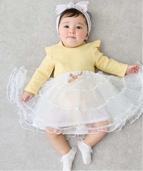 キーワード:ベビー服 ロンパース フリル リボン レース 無地
