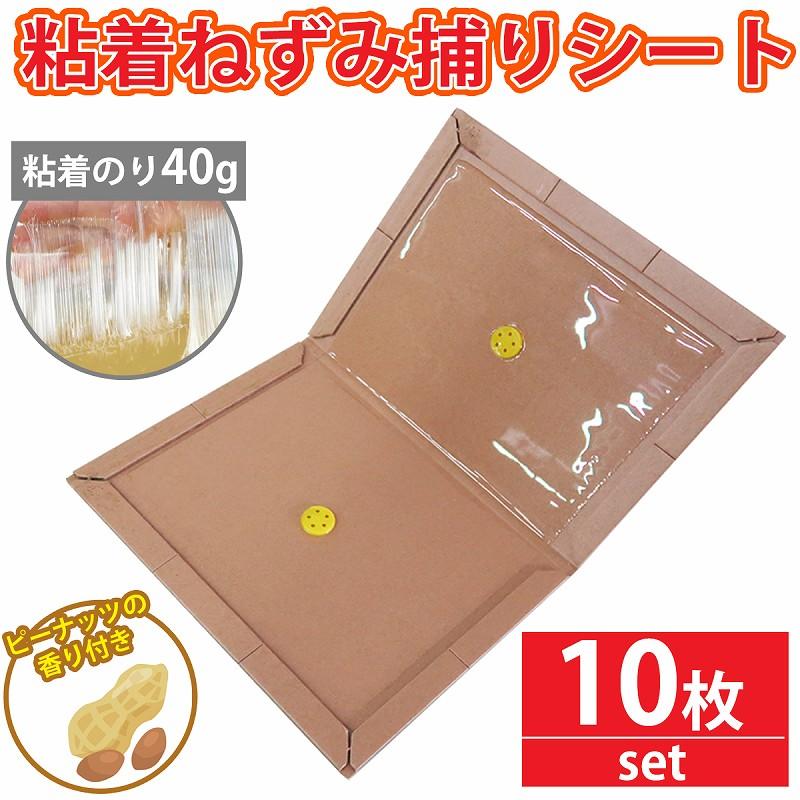 ネズミ捕り 粘着シート 10枚セット シート ねずみとり ネズミ 40g 匂い付き 駆除 屋外 専門業者 プロ仕様 スリット付き 捕獲 対策 害獣 NT-01