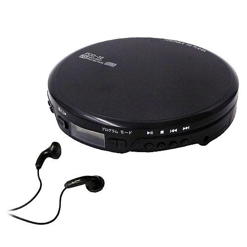 ポータブルCDプレーヤー 音飛び防止機能 プログラム再生 リピート再生 PCD-32 ブラック ステレオイヤホン付き 重低音機能 WINTECH