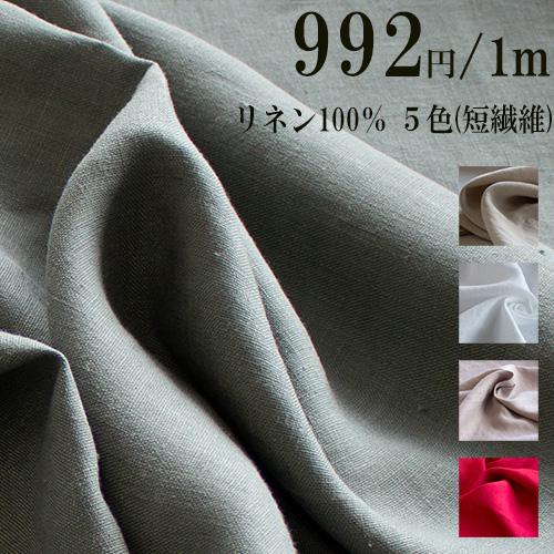 短繊維 麻100% 中厚 リネン 生地 5色■幅広 135cm 布■1m単価992円