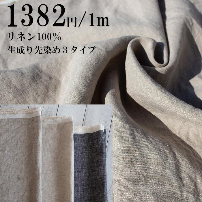 麻100% 生成り・ブラックシャンブレー 中厚 ■幅135cm■1m単価1382円