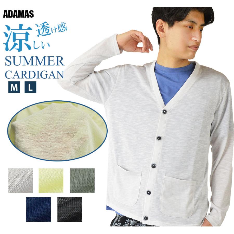サーマー カーディガン メンズ サマーニット 長袖 無地 Vネック カーデガン ニットソー 洗える 透け感 涼しい 薄手 夏用 羽織り 春 夏 秋 UV対策 冷房対策 海
