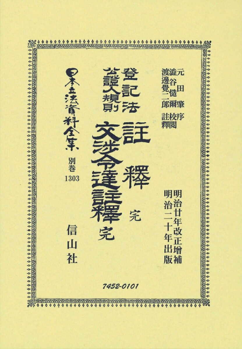 登記法公證人規則註釋 完・登記法公證人規則交渉令達註釋 完 (日本立法資料全集別巻 1303) [ 元田 肇 ]