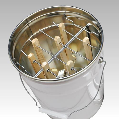 ※蓋のベルト部分のロックに仕様変更があります。(商品画像2枚目参照)※ロックする際、少し固い場合がありますのでご注意下さい。その他の仕様に変更はございません。蓋がベルトで密閉できますので匂いが漏れず、車内や倉庫も臭くなりません。刷毛を吊るす金具から底面まで24cmなので、目地刷毛は入りません。直径:240mm高さ:300mm