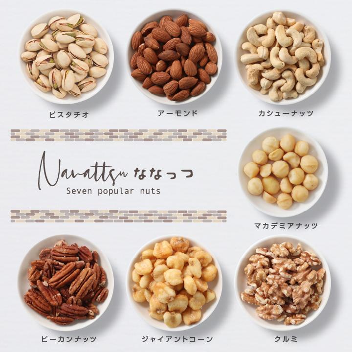 アーモンド 50g / ピスタチオ 40g / カシュー 50g / ピーカン 40g / マカデミア 40g / クルミ 40g / ジャイアントコーン 40g