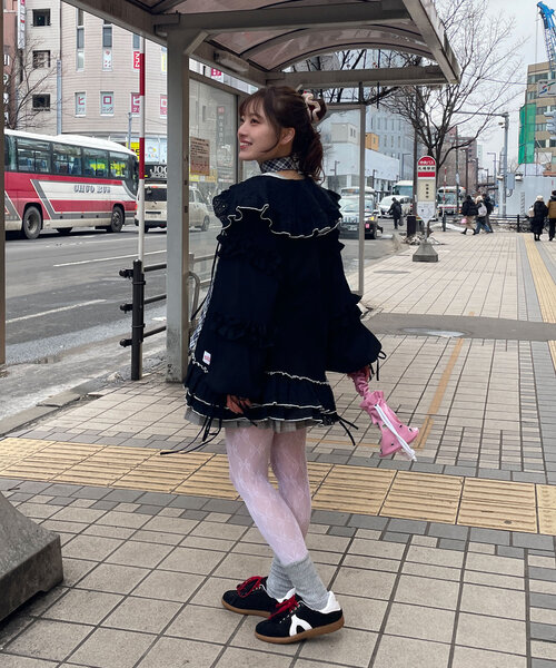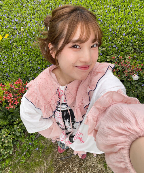 キーワード:チュニック フリル リボン 花柄 長袖 膝丈 無地