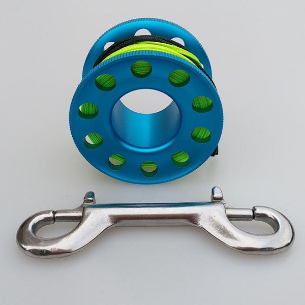 視認性の高いラインを備えたアルミニウム合金フィンガーリール.長さ15m / 49.21ft