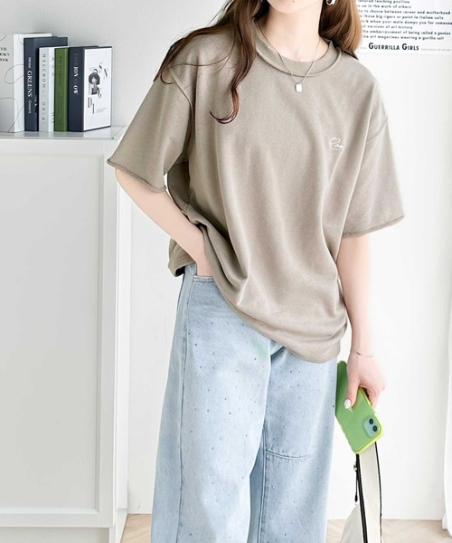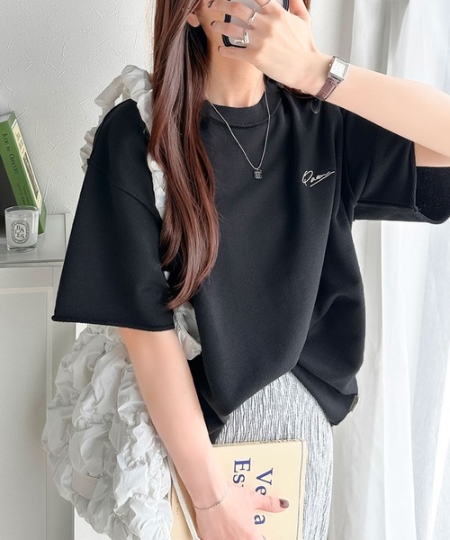 商品名:袖口くるりん。ワンポイント刺繍ハーフスリーブ裏毛 オーバーサイズ Tシャツ