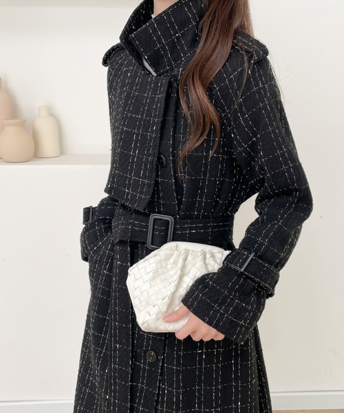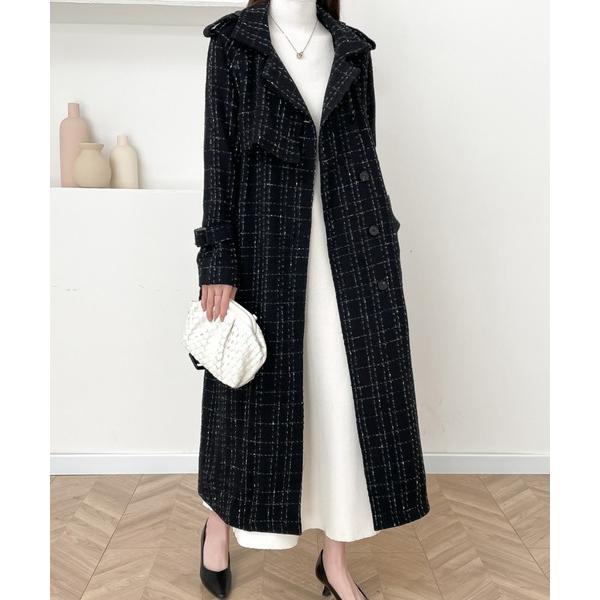 商品名:ウエストマークケープデザインツイードロングコート