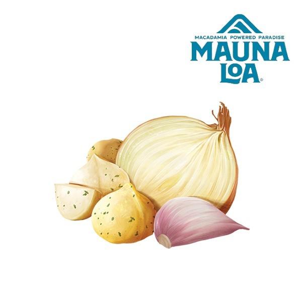 じっくりドライし香ばしくローストしたマカダミアナッツを、濃厚なガーリックオニオン風味に味付けしました。一粒食べればやみつきになる後をひく美味しさ。ビールにもぴったりのこれぞハワイの味。
