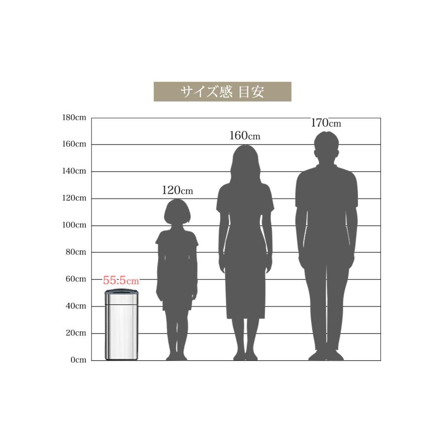 ごみ箱本体の高さは約55.5cm、キッチンカウンター下やリビングで使いやすいサイズと容量です。