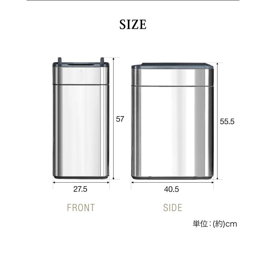 清潔感のあるステンレスとシンプルデザインのセンサー開閉式ごみ箱です。手を触れずにフタが自動で開閉、片手が塞がっていても楽にごみ捨てができます。