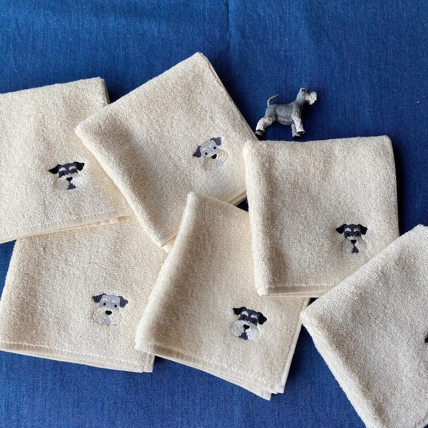 シュナウザー雑貨 タオルハンカチ シュナウザー刺繍 品質保証タグ付き