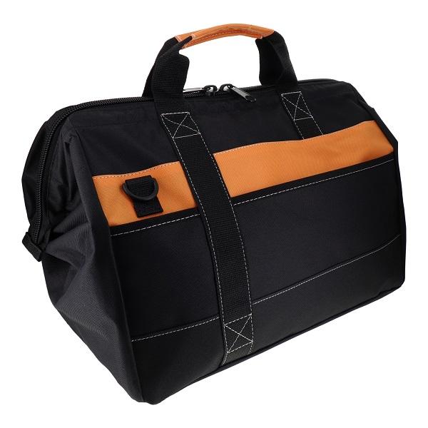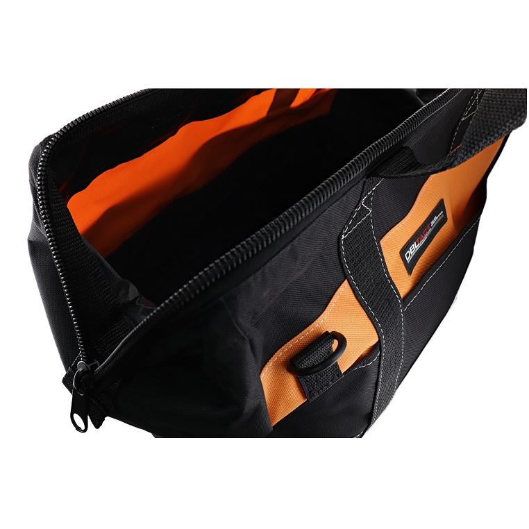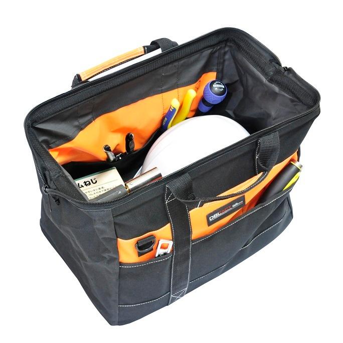 ■特長■・工具・道具・資材の収納持ち運びに。・大きく開き、出し入れがしやすいつくりです。・適度に仕切られた内ポケットが付いています。・ファスナー開閉式で中身がこぼれない、ほこりが入らない。・多目的ポケットが両面に付いています。・Mサイズ・サイズ:H285×W380×D255mm・重量:約710g