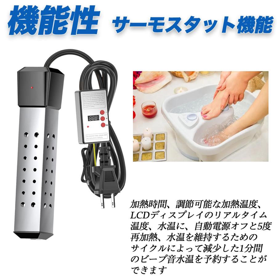 さまざまな容器や浴槽に適用可能で、寒冷地での快適なお風呂や、足湯など様々なニーズに対応します。インフレータブルプールやバケツでも利用可能です。