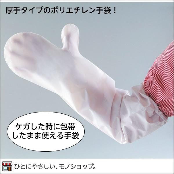 3.手袋本体は65μ(ミクロン)の厚手フィルムを使用。厚手タイプのポリエチレン手袋