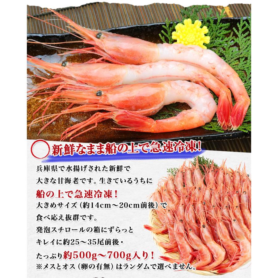 大きな甘エビです。兵庫県で水揚げ、生きているうちに船の上で急速冷凍!これ以上ない鮮度でお届けします!