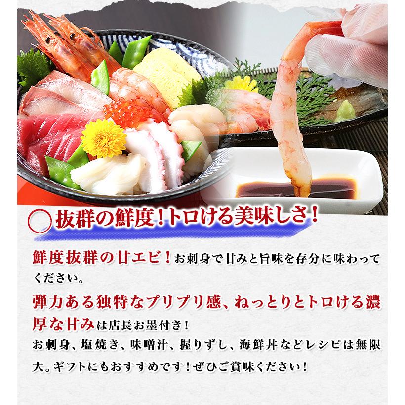 鮮度抜群の甘エビ、お刺身で甘みと旨味を存分に味わってください。