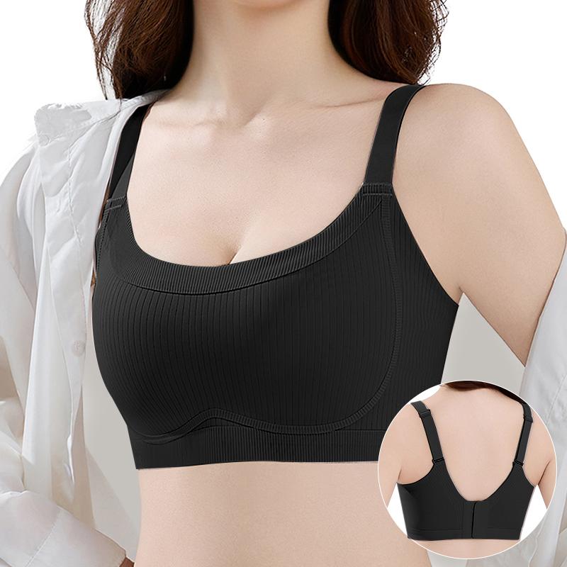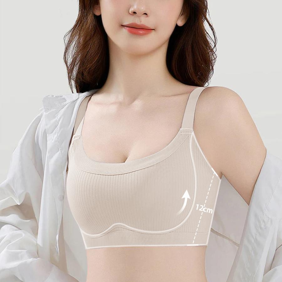 ノンワイヤー設計で胸を優しくサポートし、スッキリ小さく見せる。