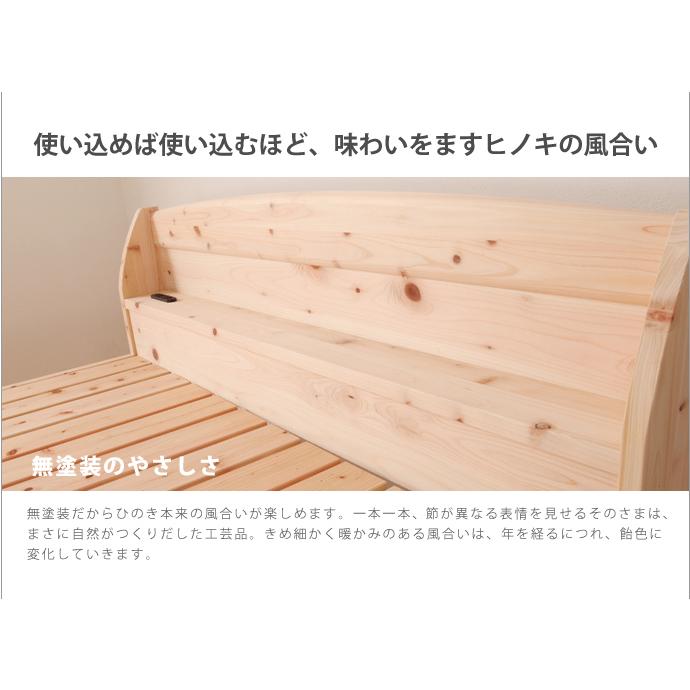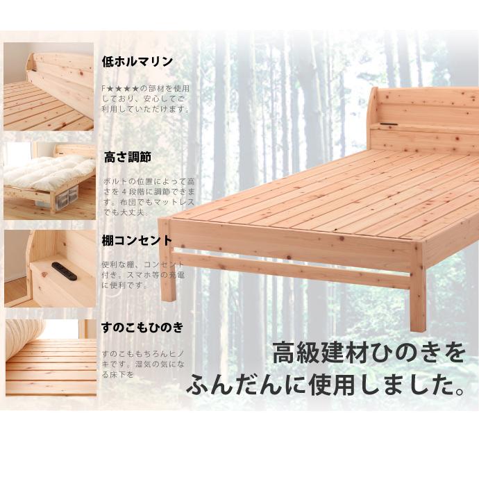 檜ベッド 日本製 ひのきベッド ヒノキベッド 国産 桧ベッド F★★★★ 低ホルマリン 高さ4段階調整 棚・コンセント付き 檜ベッド 日本製 シングル 日本製 国産ベッド ひのき材 低ホルムアルデヒド