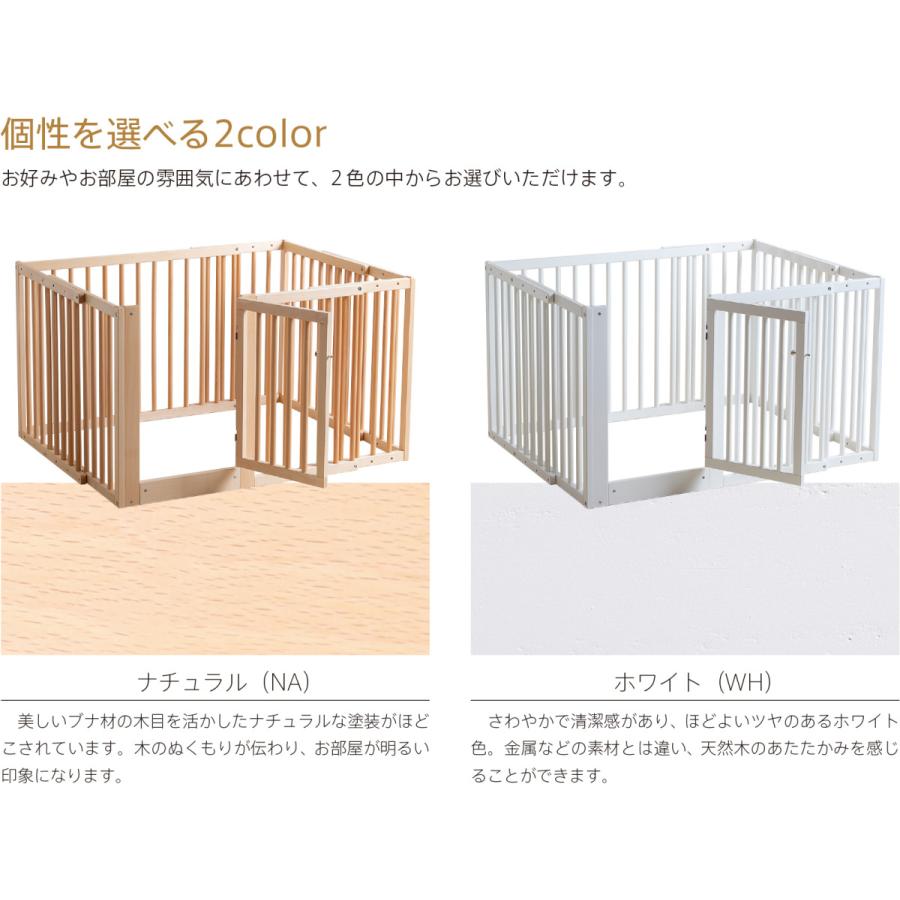 枠だけではなく柵の部分も天然木(ブナ材)を使用したシンプル設計ながら、幅や奥行きもサイズ調整可能な日本製の木製ペットサークルです。扉も奥と手前の両方向に開くことができるので、左右どちらにも扉を配置することができます。カラーはナチュラル(NA)とホワイト(WH)の2色。ベビーベッドと同じ材料と技術を使ってスリーピーの日本工場で製造されています。赤ちゃんにも安心なので、ペットにもやさしい。そんな天然木ペットサークルに仕上がっています。生産国:日本