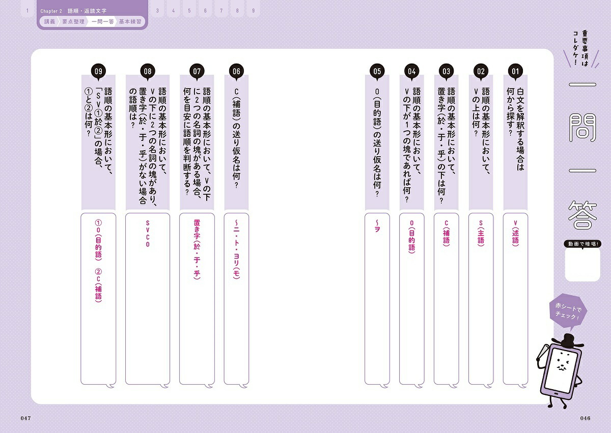 ★★★参考書×授業動画=最強! 高校3年分の漢文句法を最速で駆け抜ける。★★★受験に必要な漢文句法の要点を1冊で総整理。スタディサプリ超人気講師の岡本梨奈先生による面白くてわかりやすい授業動画が全章に付いて、自宅にいながら高校3年間の漢文句法をスピード攻略できる。…………………………………………………………………………………●本書の基本構成●STEP1 講義漢文句法を講義調の文章で徹底的にわかりやすく解説。二次元コードから著者の岡本梨奈先生による授業動画にもアクセスでき、スマホでいつでもどこでも何度でも授業が受けられる。STEP2 要点整理[STEP1]で説明した内容の要点をコンパクトに整理して掲載。STEP3 一問一答[STEP1]の講義の内容が身についているかを一問一答形式でチェック。※本書の巻頭に付属している「漢文句法どこでもミニブック」には、全チャプターの一問一答を抜粋して掲載しています。STEP4 基本練習[STEP1]~[STEP3]までの内容の理解度を問題形式で確認。…………………………………………………………………………………理解しやすい参考書 、腑に落ちる授業動画。参考書と講義の良いとこ取り!独学の難しい漢文句法でも、この本でなら、攻略できる。ーー新時代の受験参考書でその手に合格をつかめ!…………………………………………………………………………………\\ 読者の声続々! //ご意見・ご感想・スタサプの古典の先生がとても分かりやすくて良いと友人からおすすめされていたので購入致しました。内容がとても分かりやすく、とても良い勉強ができると思います。(高校2年生・国公立志望)・めちゃくちゃわかりやすくてほんとに人生変わりそうです。ありがとうございました(高校3年生・国公立志望)・今まで参考書を一冊使い切る事でさえ難しかった私でも挫けず楽しく学ぶことができました。ありがとうございました(高校3年生・国公立志望)・要点整理のページにも具体例がありとても分かりやすい。必要な基礎知識が詰まっている。(高校3年生・国公立志望)・chapter1をやったが、とても分かりやすく苦手意識があった置き字についても上手くまとめられており、理解が深まった。この後続くchapterも勉強していくことで、漢文ができるようになるのを楽しみに待っている。(高校2年生・国公立志望)※ご注意※・動画の閲覧にはインターネット接続が必要です。・二次元コード読み取りに対応したスマートフォン/タブレットをご用意ください。