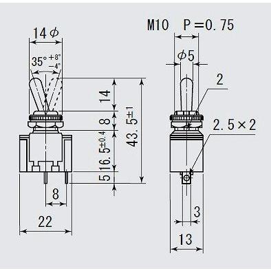 品番:DS122E回路:SPST(2P)スイッチ特性:ON-OFF電流容量:10A.125V.AC / 6A.250V.AC絶縁抵抗:DC.500V 100MΩ以上(MIN)絶縁耐圧:AC.1500V 1分間接触抵抗:20mΩ以下(MAX)