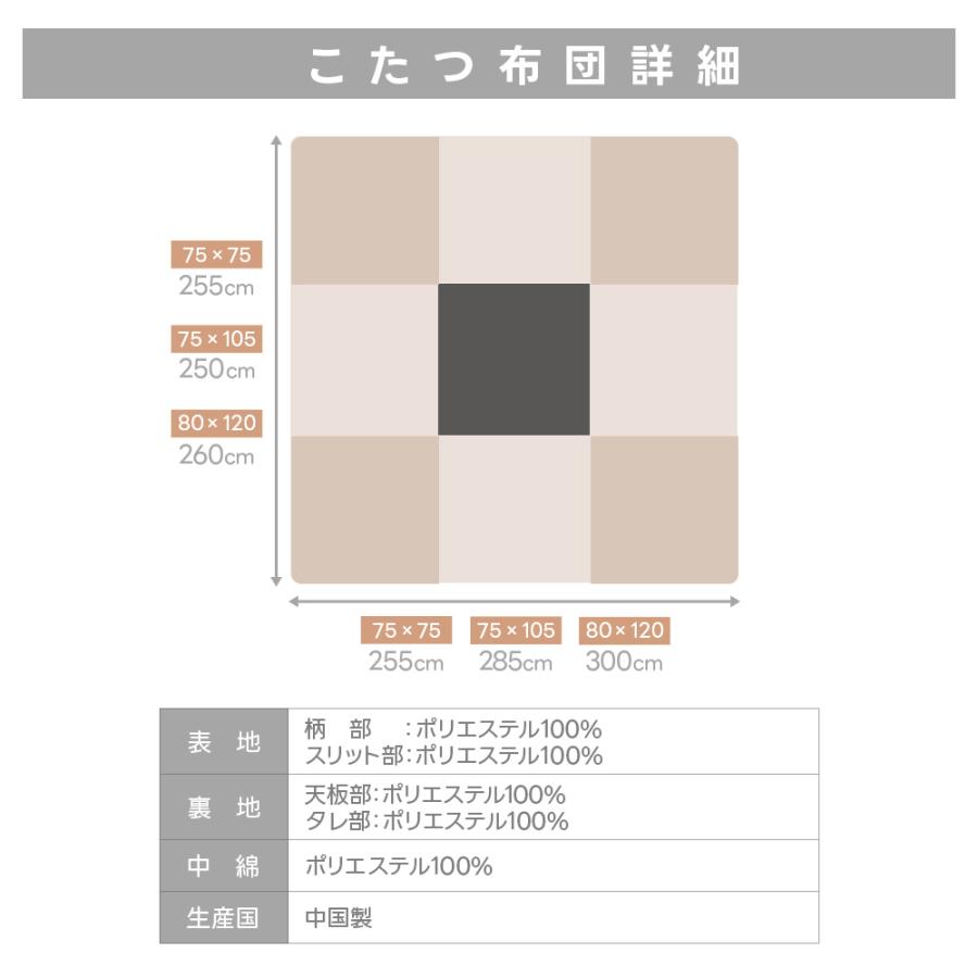 ●サイズ:260×300cm(こたつ本体高さ 最大69.5cmまで対応)