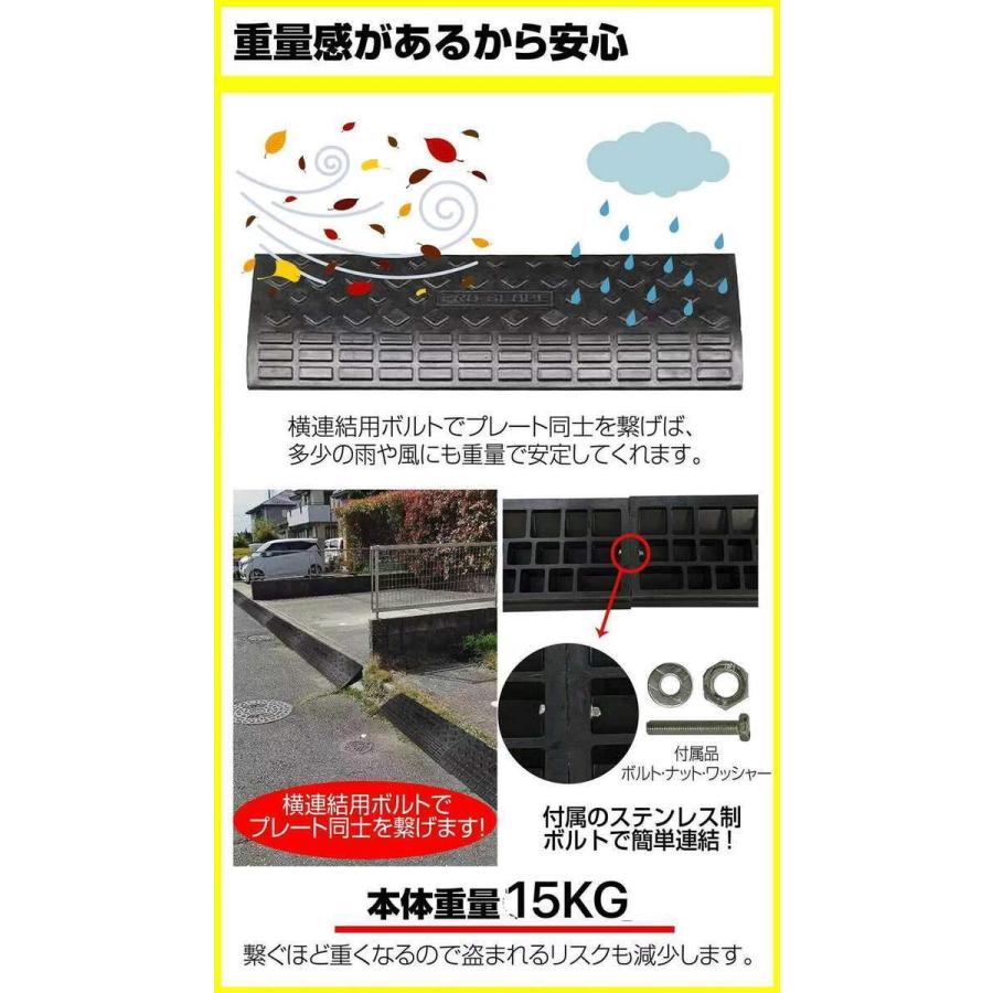 駐車場やガレージ、玄関前など様々な場所に使われ、車や自転車、ベビーカー、台車などの移動をスムーズにできます。