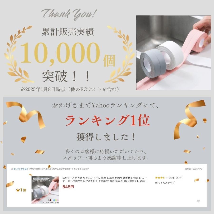 防水テープ 防カビテープ 防水・防カビテープ 水回り 洗面台 キッチン はがせる かわいい おしゃれ 可愛い 白 トイレ 浴室 お風呂用 隙間テープ マスキングテープ 強力 コーナー 貼って剥がせる ATTO
