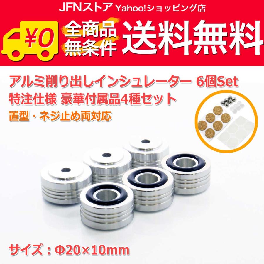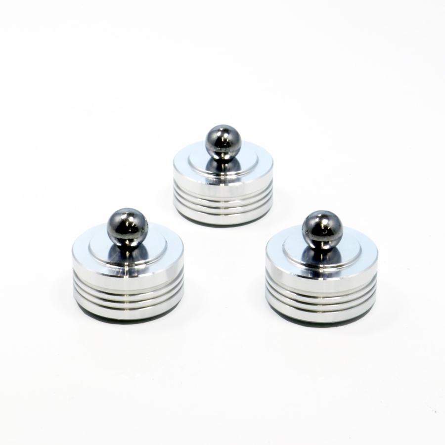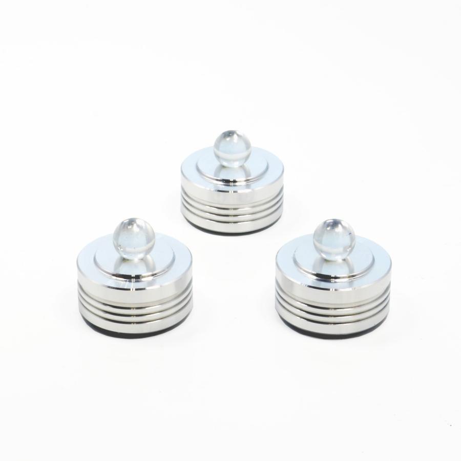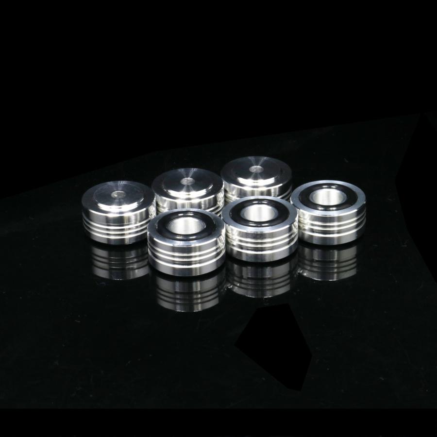 共振抑制及び振動吸収効率化を狙って3つの溝を刻んだ特注アルミ削り出しインシュレーターΦ20×10mmサイズ6個セットです。