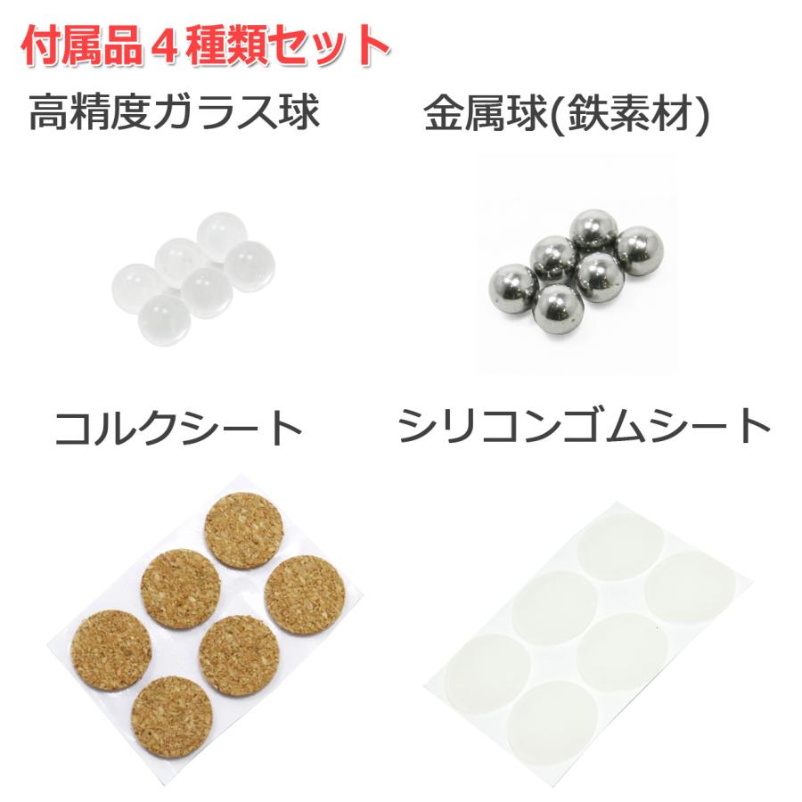 お好みで音質調整をして頂けるよう、材質の異なるガラス球と鉄球の2種類をおまけで付属!