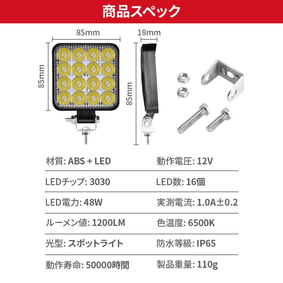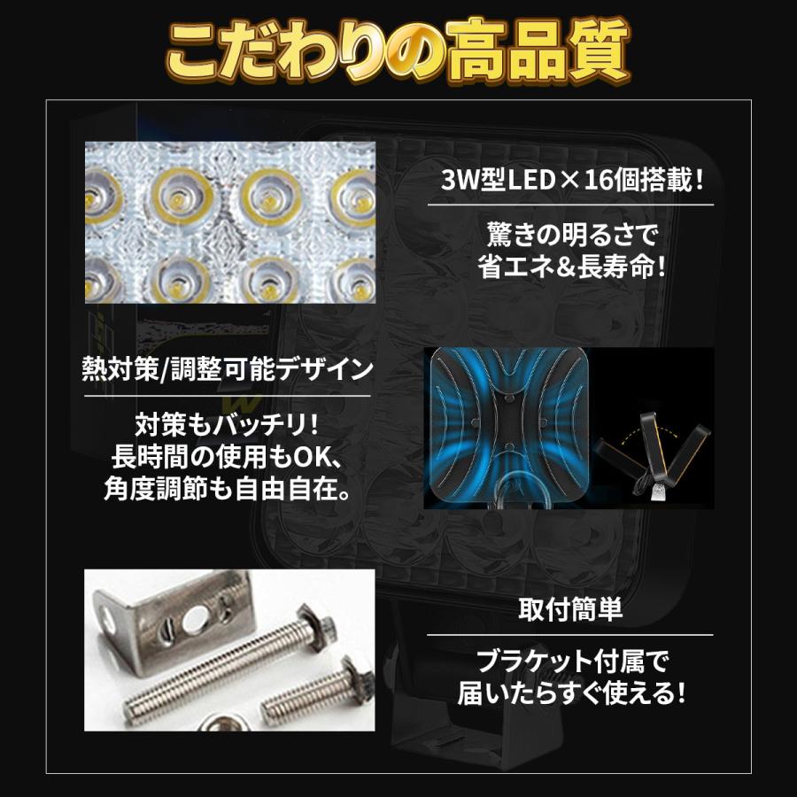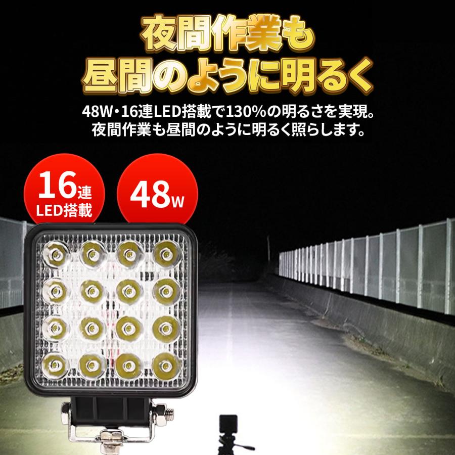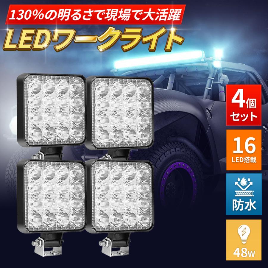 LED 作業灯 ワークライト 4個セット 12V 48W 16連 防水 防塵 高輝度 角型 夜釣り 夜間作業 トラクター 広角照射 投光器 照明 屋外 サーチライト 車 トラック 重機 船舶 キャンプ 長寿命 機械 オートバイ 自動車
