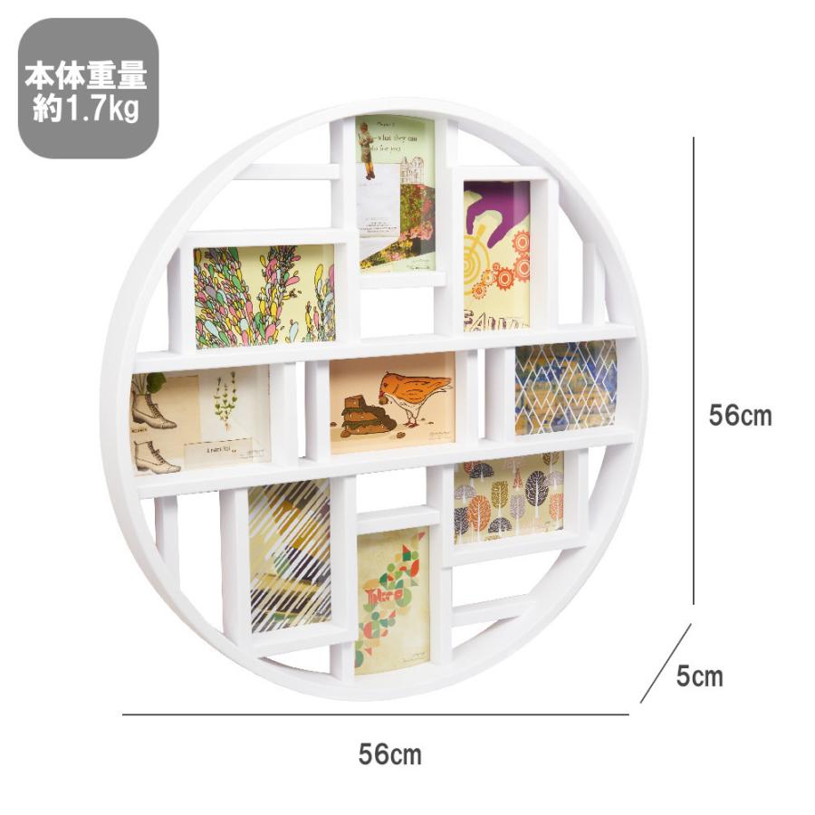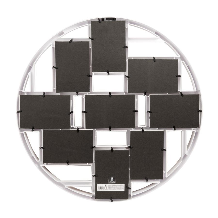 インパクトのある大きなフレームで9枚の写真を飾る事ができる。写真を入れ替えるだけで部屋の印象がグッと変わります。壁掛けタイプのフレーム。写真サイズ:KGサイズ9枚【サイズ】φ56×5.5cm【本体重量】約1.7kg【素材】ポリスチレン、ガラス【原産国】中国