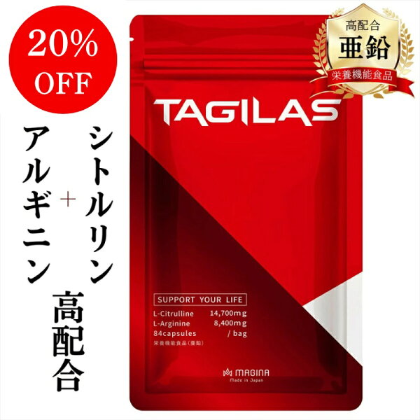 シトルリン アルギニン 亜鉛 サプリ TAGILAS タギラス 栄養機能食品 MAGINA マギナ シトルリンアルギニン メンズサプリ マカ 亜鉛 テストステロン 男性 増大サプリ クラチャイダム タウリン トンカットアリ 黒にんにく 日本製 180粒 3+1