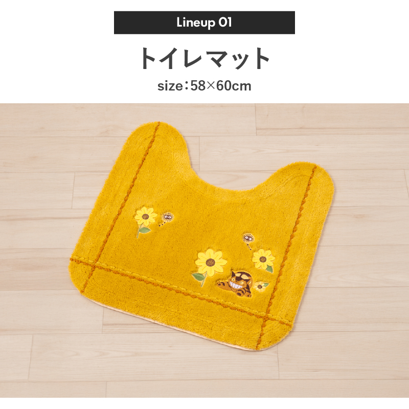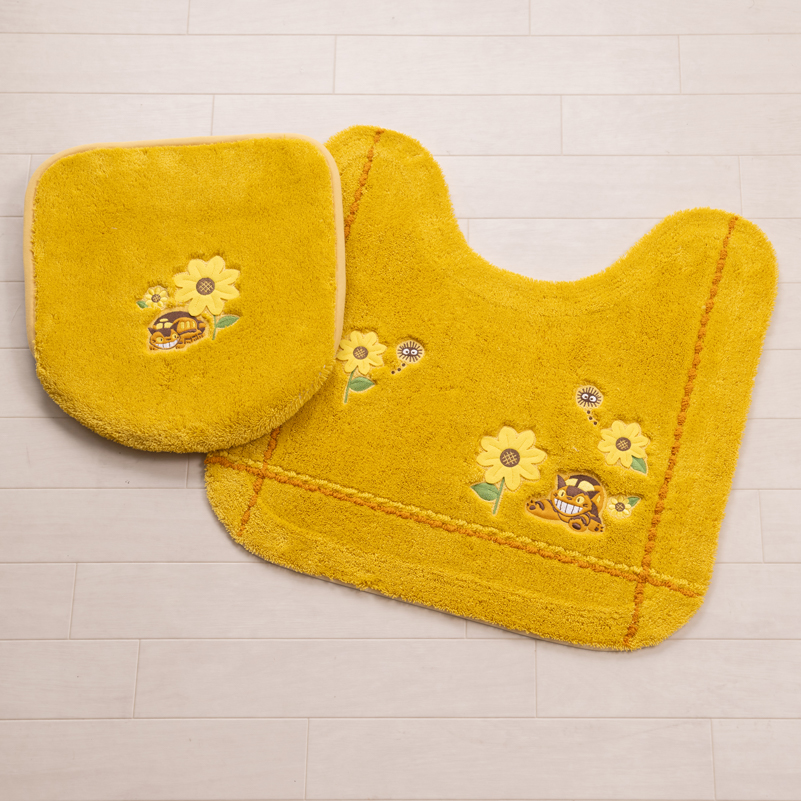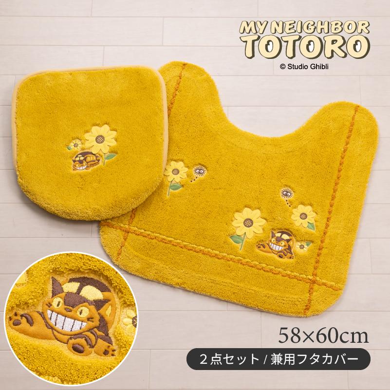 ●商品名:トイレマットセット 2点 約58×60cm トイレマット+兼用フタカバー となりのトトロ 花のバス停 イエロー センコー