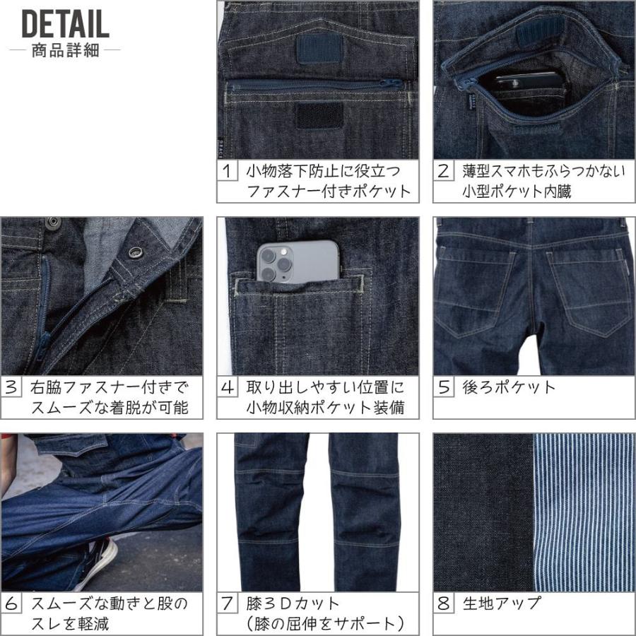 特長:胸ファスナー付ポケット/右脇ファスナー/小物収納ポケット/股クライミングカット/ヒザ3Dカット
