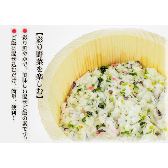 五色の彩り野菜をほど良く味付けした美味しい混ぜご飯の素です。