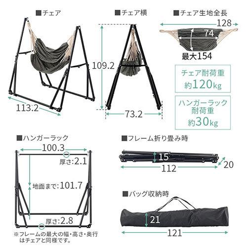 ハンモック・チェア・ハンガーラックとマルチに活躍する3WAY。