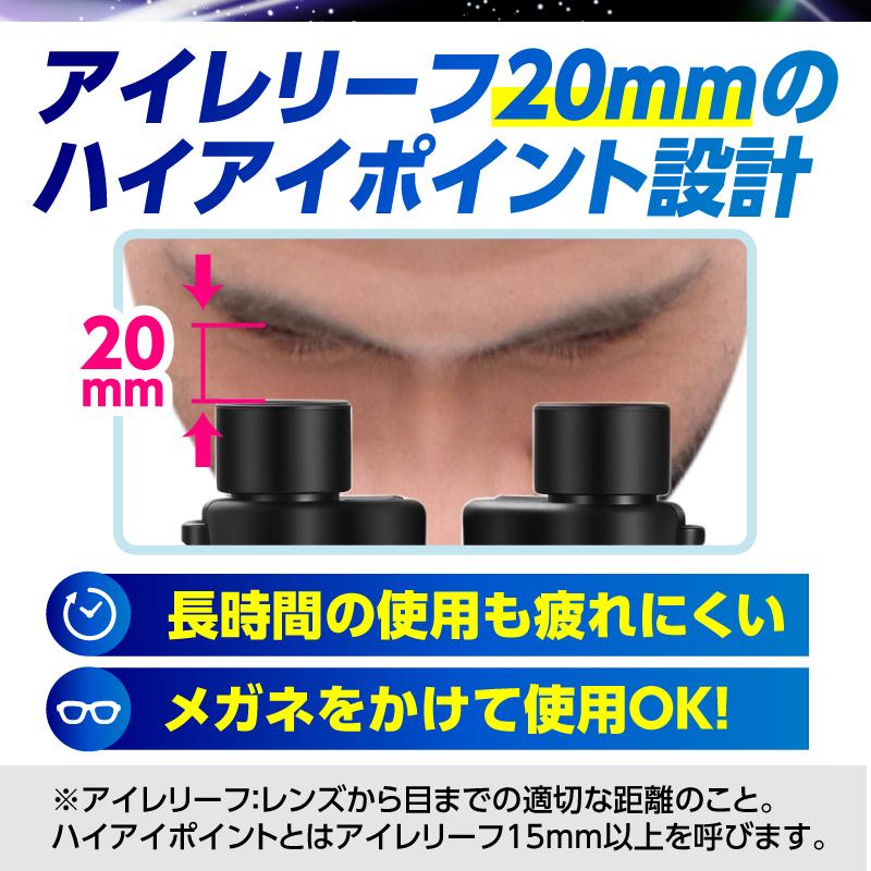 ・アイレリーフ(レンズから目までの適切な距離)20mmのハイアイポイント