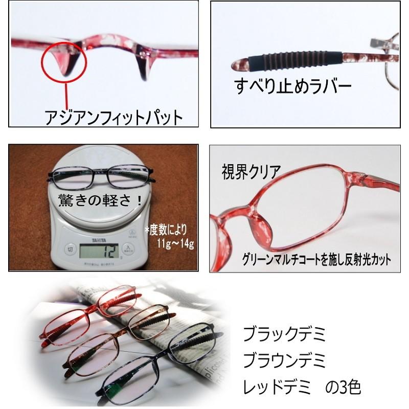 <材質>■ 枠: TR-90 グリルアミド系樹脂、■ レンズ:硬質プラスチック<サイズ>■ 顔幅: 127mm ■ つるの長さ: 135mm■ レンズサイズ: 29mm x 50mm■ 重さ: 約14g<カラー>■ ブラウンデミ、ブラックデミ、レッドデミ/全3色<保証>■メーカー機能性保証期間:購入日から1年間 詳細につきましてはお問い合わせください。※製造ロットにより「グリーンマルチコート」の色に違いが出る場合がありますが品質には問題ありません。