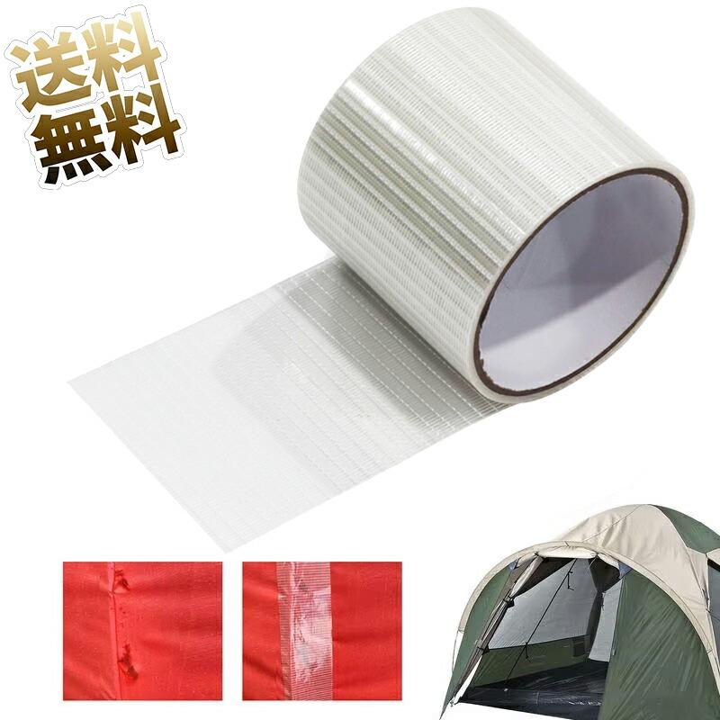 【グラスファイバー補強の補修テープ】 テント補修テープは従来の補修テープの欠点を排除した、最新開発したグラスファイバー強化した補修テープで、伝統的な材料より強い引き裂き性、耐久性、耐候性、耐水性、耐熱性と粘着力を特徴とします、どんなに磨いても壊れにくいです。強度も強くて、力を入れて引っ張っても割ったり裂いたりしません、長時間に渡って水・太陽光・熱にさらされても劣化をしにくいです