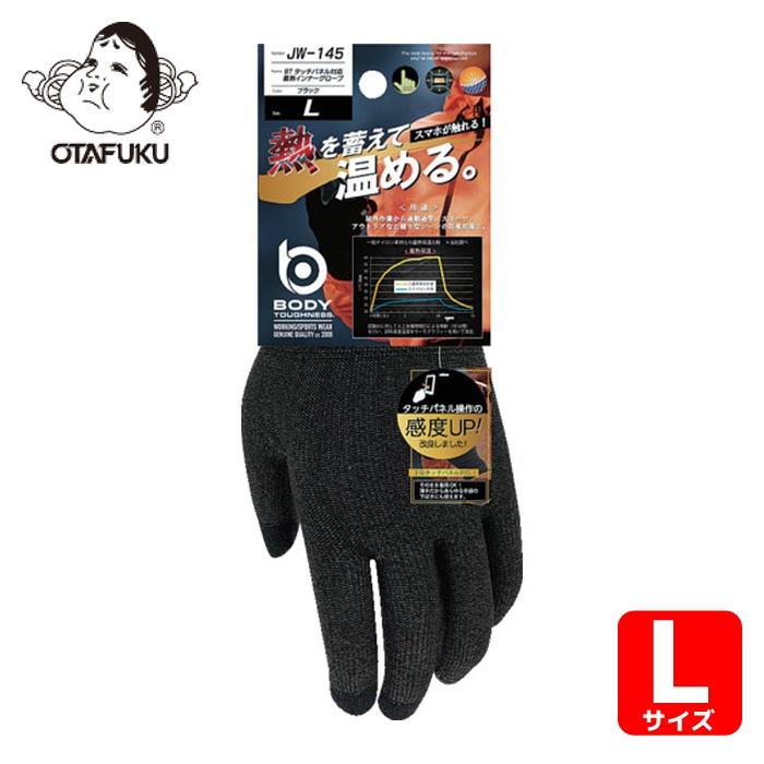 【おたふく手袋 OTAFUKU】おたふく手袋 JW-145 BTタッチパネル対応 蓄熱インナーグローブ 黒 L