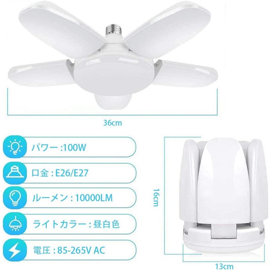【超高輝度100ワット】6つの高品質のLEDチップが付いてるパネルがあり、10000LMです。6000〜6500KとCRI80+の昼光色で、300ワットの白熱電球に相当します。50,000時間以上の点灯時間で、色がより自然に見えます。
