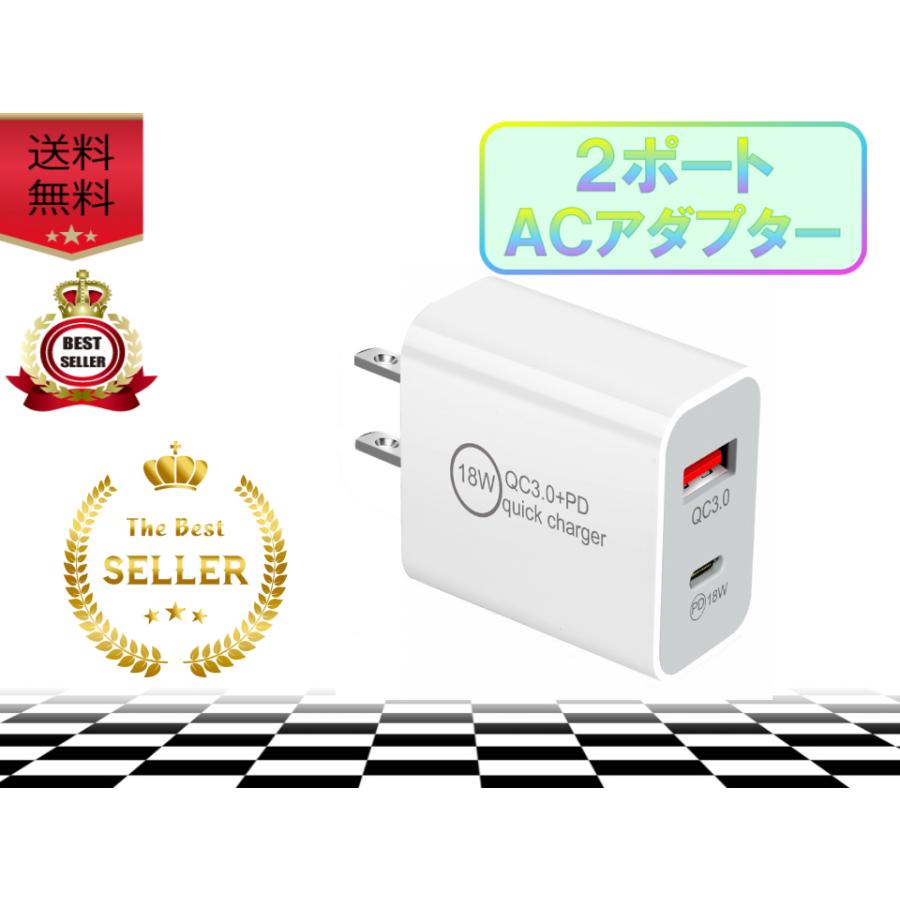 2ポート ライトニングケーブル用 USB&Type-C コンセント アダプター おすすめ 充電器 タイプC 急速充電 安い 高耐久 丈夫 USB充電器 apple adapter iPhone iPad Android スマホ対応 多機種対応 小型 軽量 人気【1000円ポッキリ】 クーポン配布中